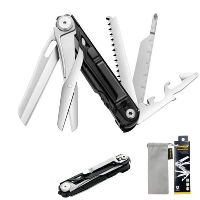 Мультитул Traveler MQ063G, многофункциональный инструмент 11 см Черный