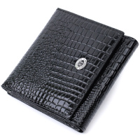 Женский компактный кошелек из натуральной лакированной кожи ST Leather 22688 Черный