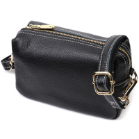 Женская элегантная сумка с двумя ремнями из натуральной кожи Vintage 22276 Черный
