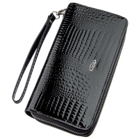 Кошелек женский из экокожи на две молнии лаковый KIVI Хамелеон 19026 Черный