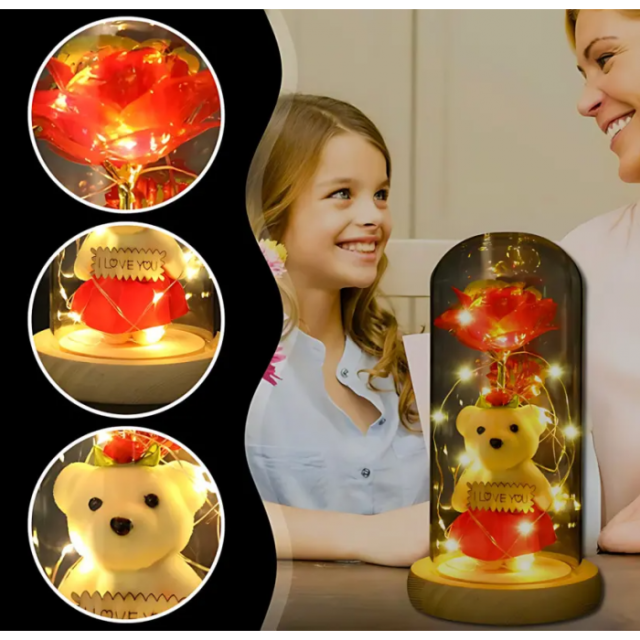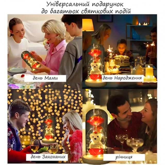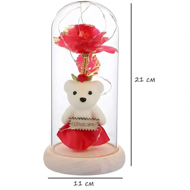 Роза под куполом с мишкой станет отличным подарком ко Дню рождения или Дню Святого Валентина. Ни одна девушка не устоит перед утонченным обаянием этого сказочного великолепия.