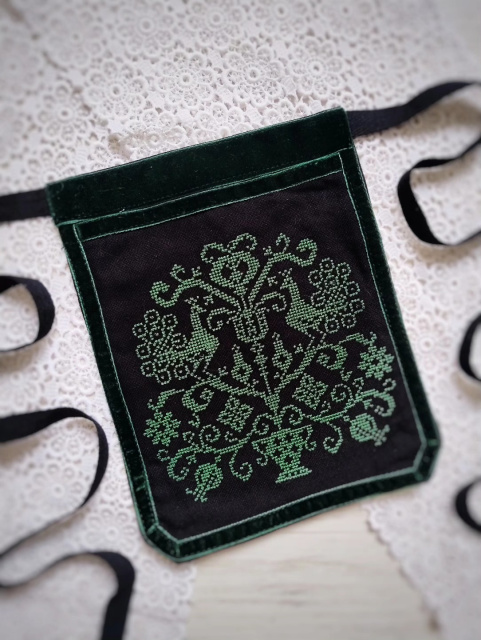 Гаман жіночий вишитий чорно-зелений.